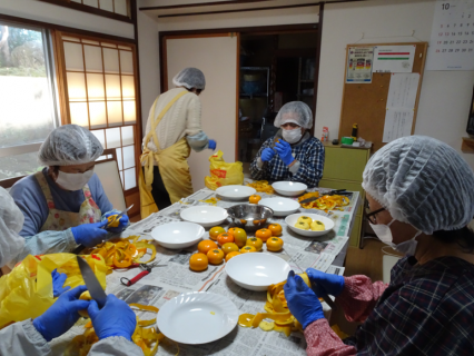 別の日には、別のメンバーが柿の皮むきと干し作業をしてくれて、第1弾終了です。