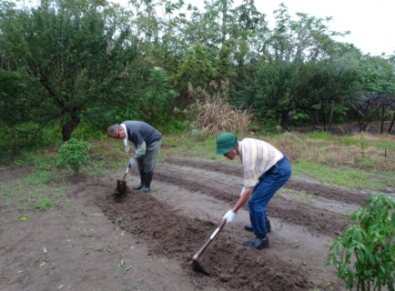畝づくりまでは終わらせようと鍬を持ったところでまたぽつぽつと雨が当たり始めた。