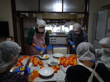 別の日には、別のメンバーが柿の皮むきと干し作業をしてくれて、第1弾終了です。