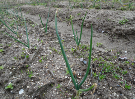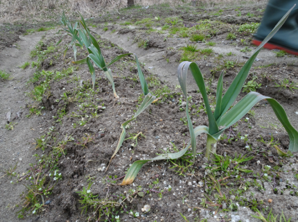 玉ねぎやニンニクの青い部分も元気に伸びています。