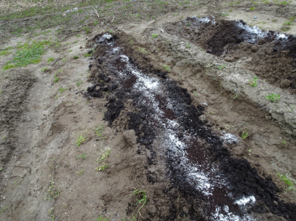空いている畝には石灰や肥料を撒いて、4月に紫蘇の種を植える準備をしました。