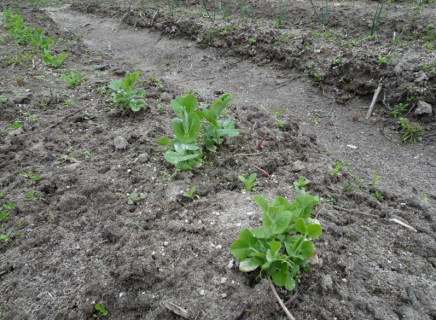 また、隣の二畝にはしそが小さな芽を出していました。スナップえんどうの収穫を終えたら、