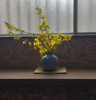 レンギョウが事務所玄関に彩を添えています。