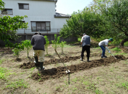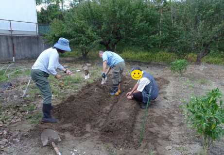 そのあとは畑を耕し、大根を植えるための畝づくりです。