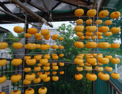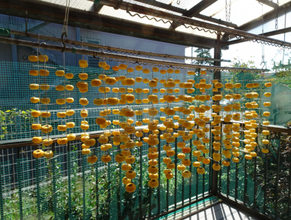 別の日には、別のメンバーが柿の皮むきと干し作業をしてくれて、第1弾終了です。